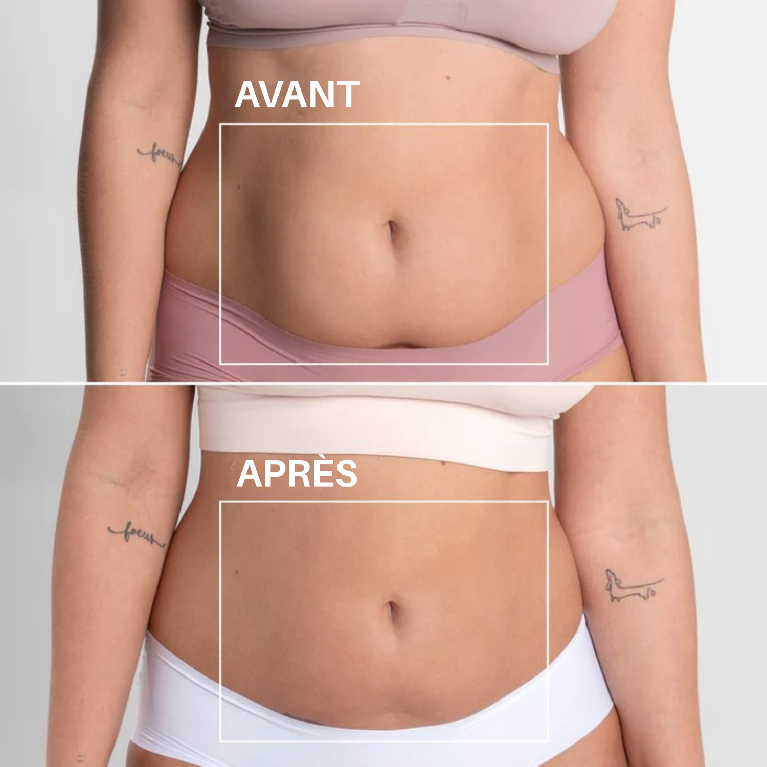 ⚠️ Si vous avez un piercing au nombril, appliquez-le juste à côté, sur une zone lisse.